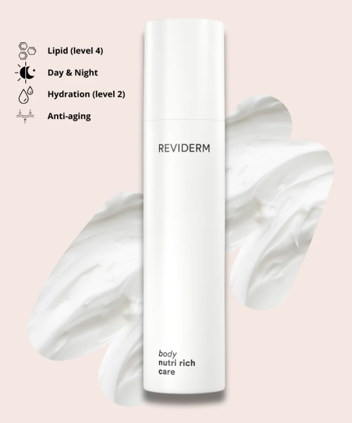 Rijke bodylotion, verzorgt, voedt en hydrateert de huid. Zo wordt tevens de huid-barrière gestabiliseert, de aanmaak van collageen wordt verbeterd en het bindweefsel wordt verstevigd. Reviderm Nutri Rich Bodycare is de ideale lotion om het lichaam optimaal te verzorgen en is geschikt voor ieder huidtype. Verzorgt, voedt en hydrateert. Verstevigt het bindweefsel. Verbetert aanmaak van collageen. Geschikt voor alle huidtypes.